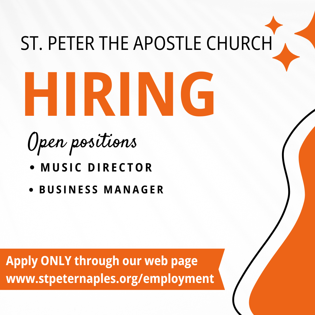 We are the family of St. Peter the Apostle Parish, a communion of cultures united by the love of Christ. We reach out to all through prayer, spiritual formation, compassion and service. We are a stewardship parish, striving together to be "the hands and feet of Christ" on Earth.